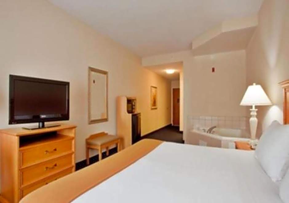 This room features a flat-screen TV, a microwave, and a refrigerator.